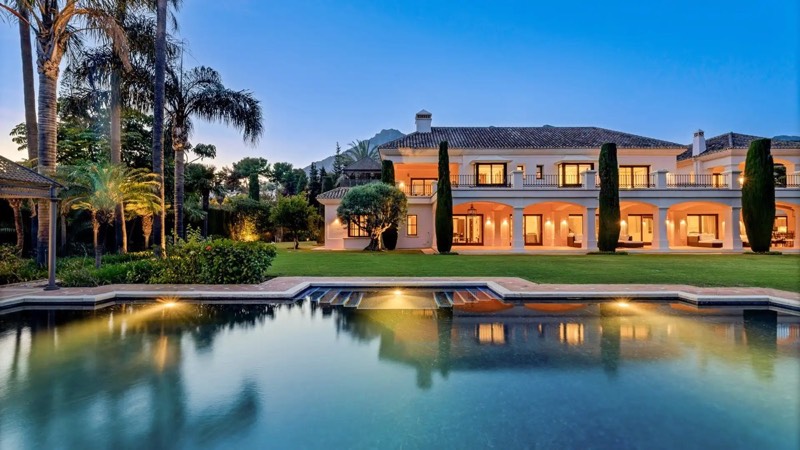 Stunning garden villa on the prestigious New Golden Mile. Beautifully landscaped gardens and luxury living spaces.